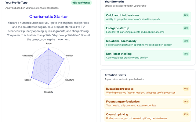 Alex, an R&D manager integrated two teams from different structures. With WittFlow Teams, he was able to map profiles, anticipate areas of friction, and lay a solid foundation for communication from the very first weeks.